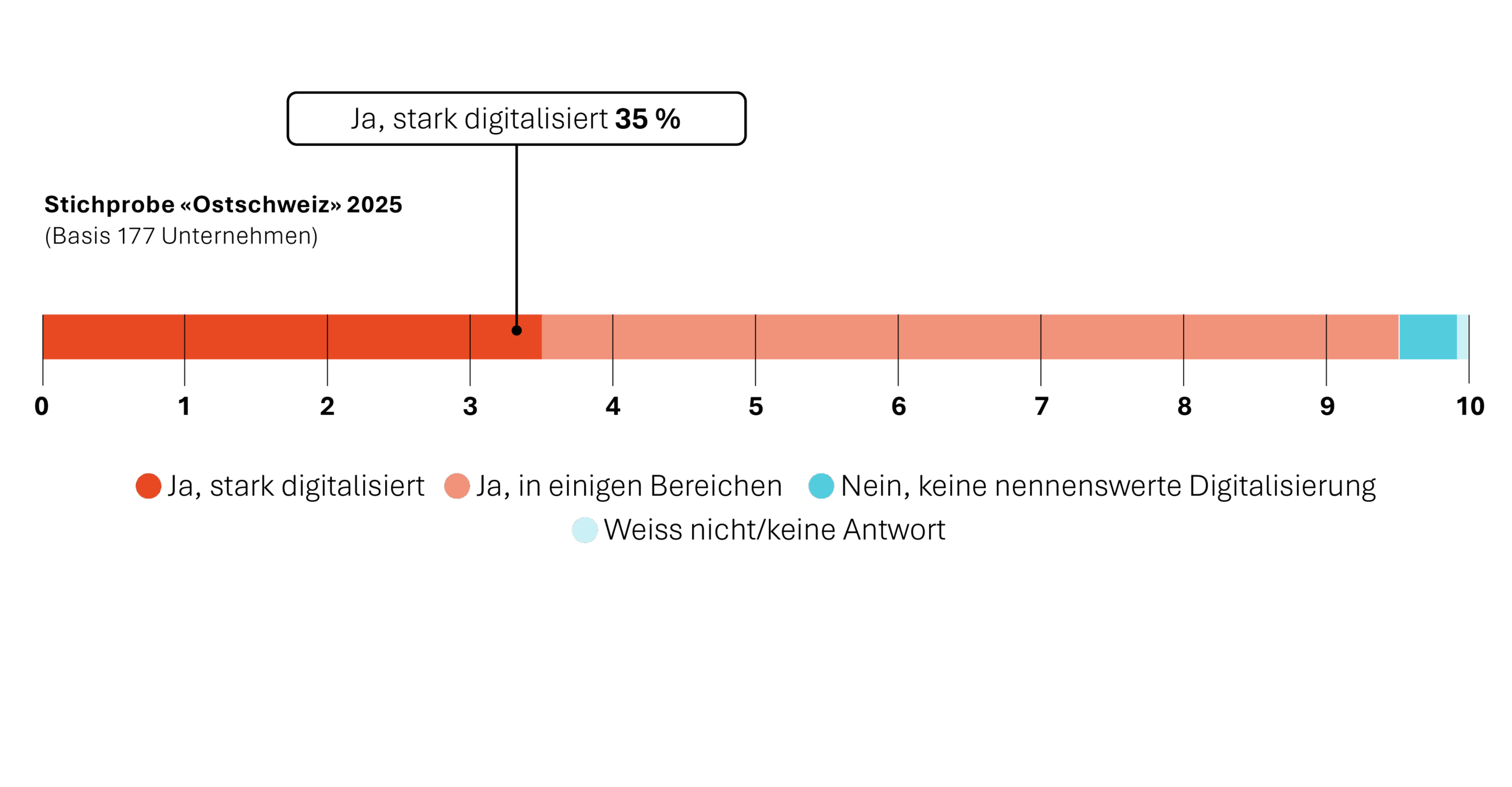 Die vorliegende Studie ist als Ausgangspunkt einer langfristigen Beobachtung angelegt. Wir laden Unternehmen ein, die Ergebnisse als Impuls für ihre eigene Weiterentwicklung zu nutzen und sich an der nächsten Erhebung im Herbst 2026 zu beteiligen. In dieser ersten Ausgabe haben vor allem digital aktive Unternehmen teilgenommen. Um ein vollständigeres Bild der Ostschweiz zu erhalten, brauchen wir im kommenden Jahr auch jene, die sich noch auf dem Weg befinden. Jede Teilnahme stärkt die gemeinsame Wissensbasis und trägt dazu bei, die digitale Zukunft der Ostschweiz faktenbasiert und gemeinsam weiterzuentwickeln.